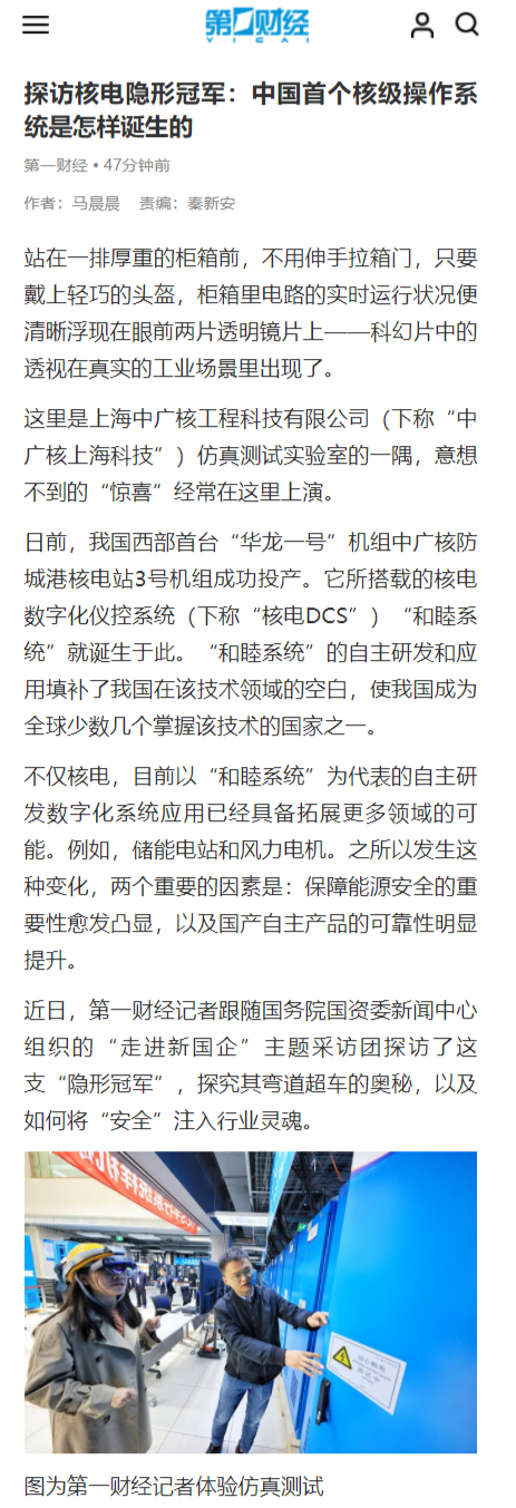 ¿ËÈÕ£¬£¬£¬£¬£¬ÔÚÎÒ¹ú×ÔÖ÷ºË¼¶DCSƽ̨¡°ºÍÆøÏµÍ³¡±ÀÖ³ÉÓ¦Óõ½¡°»ªÁúÒ»ºÅ¡±Î÷²¿Ê×¶Ñ¡ª¡ª·À³Ç¸ÛºËµçÕ¾3ºÅ»ú×éÖ®ºó£¬£¬£¬£¬£¬¹úÎñÔº¹ú×ÊίÐÂÎÅÖÐÐÄ×éÖ¯¿ªÕ¹µÄ¡°×ß½øÐ¹úÆó¡¤¿Æ¼¼Ç¿Æó¡±Ô˶¯×ß½øÉϺ£ÖйãºË¹¤³Ì¿Æ¼¼ÓÐÏÞ¹«Ë¾£¬£¬£¬£¬£¬Ì½·ÃºËµçÕ¾µÄ¡°Éñ¾ÖÐÊࡱ¡ª¡ª¡°ºÍÆøÏµÍ³¡±¡£¡£¡£¡£¡£¹úÎñÔº¹ú×ÊίÐÂÎÅÖÐÐÄÏà¹ØÏòµ¼¼ÓÈë´Ë´ÎÔ˶¯¡£¡£¡£¡£¡£